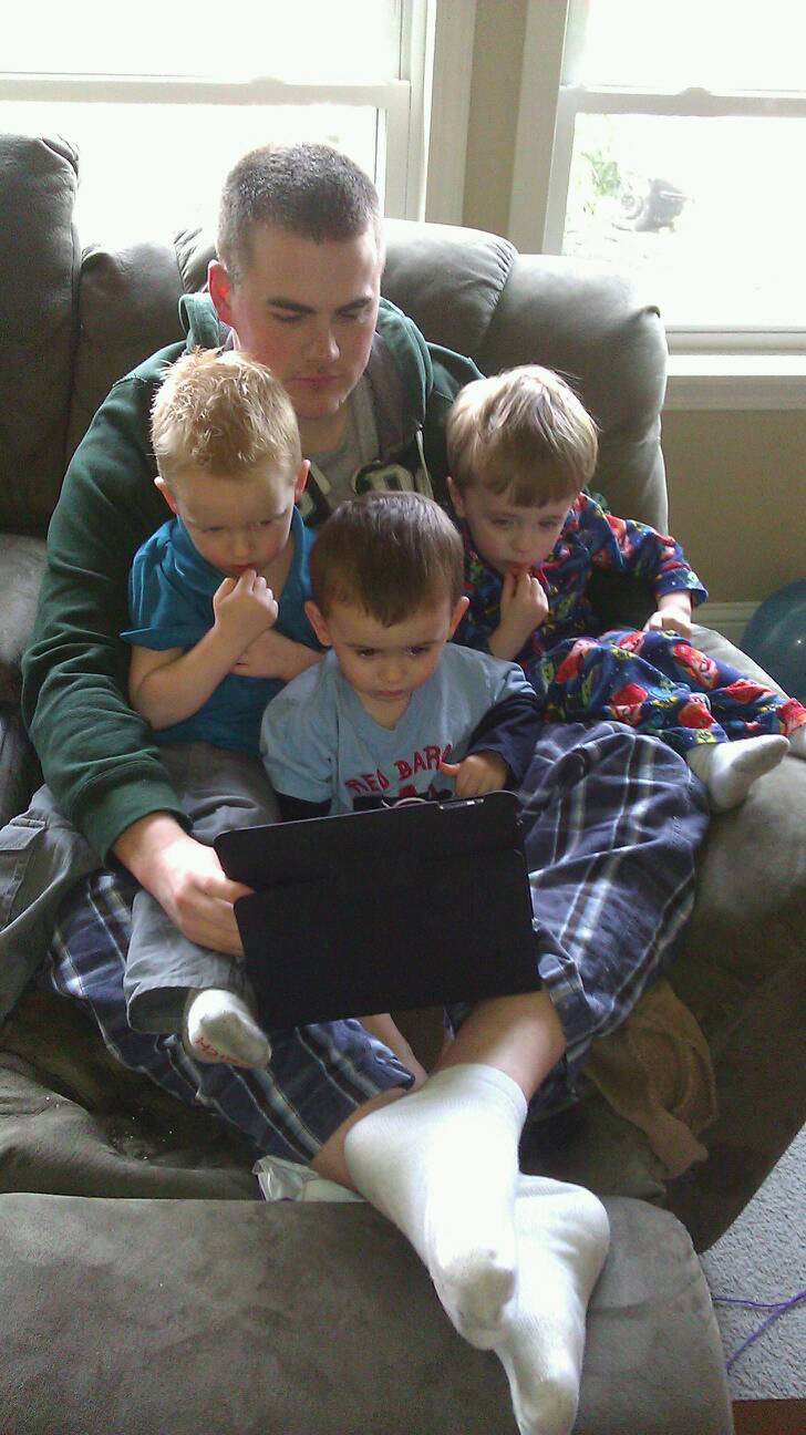 I found this picture in my phone and it made me smile. Joe is holding our nephews Sam and Wes. Brady has so much fun with his cousins